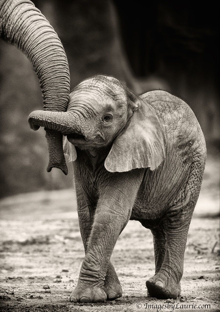 Esta cría de elefante no suelta la trompa de su madre no vaya a ser que se pierda.