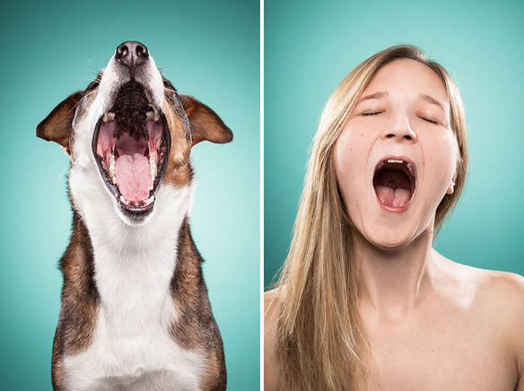 Cuando bostezamos todos parecemos iguales, aunque este perro y su dueña son realmente “clavados”.